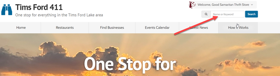 - ENTER your business name, where it says "Name or Keyword" in the top right corner of the website.