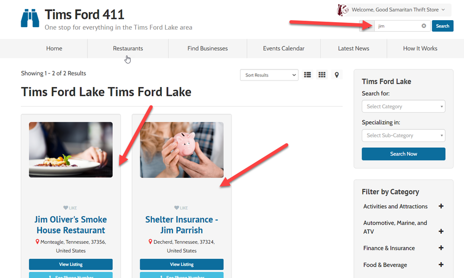 Many businesses in the Tims Ford Lake Area were pre-loaded into the system.